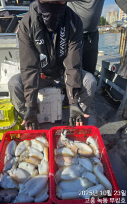 #조황 #갑오징어 ##고흥녹동부킹호 #녹동항 2025.10.23오늘 11분 정원 모시고 갑오징어 잡고 왔습니다.이제 사이즈가 장난 아닙니다. 작은것의 비중은 별로 없고 대갑이, 뚱갑이 잘 올라오네요.오늘 대분분 잘 잡으셨고 최고 33수, 28수, 27수....최저 14수로 전원 두자리수 잡으셨고 배전체 241수 나왔네요.오늘 즐겁게 먹물파티 해주셔서 감사합니다.다음주 갑오징어, 쭈꾸미 출조예정이니 일정보시고 문의주세요.김선장 010.9440.2972갑오징어 시즌에는 먹물튀는 일이 다반사 입니다.밝은옷, 좋은옷은 피해주시고 서로 이해해가며 즐겨주셨으면 합니다.그리고 새벽에는 제법 쌀쌀하니 보온에 신경써 주세요~ ■■■ 고흥 녹동 부킹호 예약 안내 ■■■예약문의 : 010-9440-2972오시는길 : 전남 고흥군 도양읍 봉암리 2766-13홈페이지 : https://booking.sunsang24.com/네이버밴드 : https://band.us/@bookingfishing